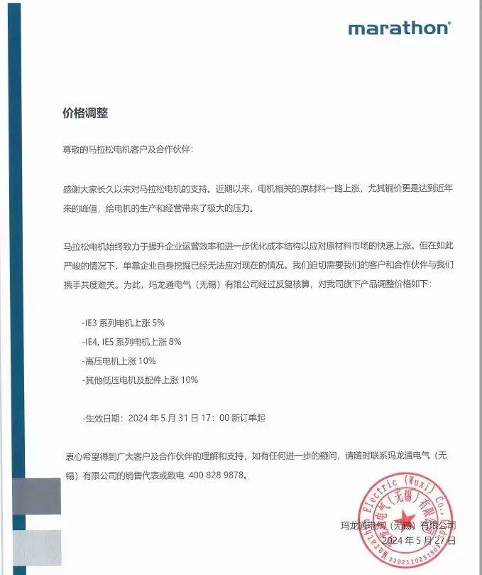 緊接著,馬拉松電機以及西安西瑪電機等著名企業也紛紛邁入漲價的隊伍之中,其調整幅度處于 5%至 10%的區間內。這些企業大概是在權衡了市場需求、競爭態勢以及成本壓力等之后,作出了相對穩妥的漲價決策,旨在保證在維持市場份額的同時,能夠對成本壓力進行一定的緩解。