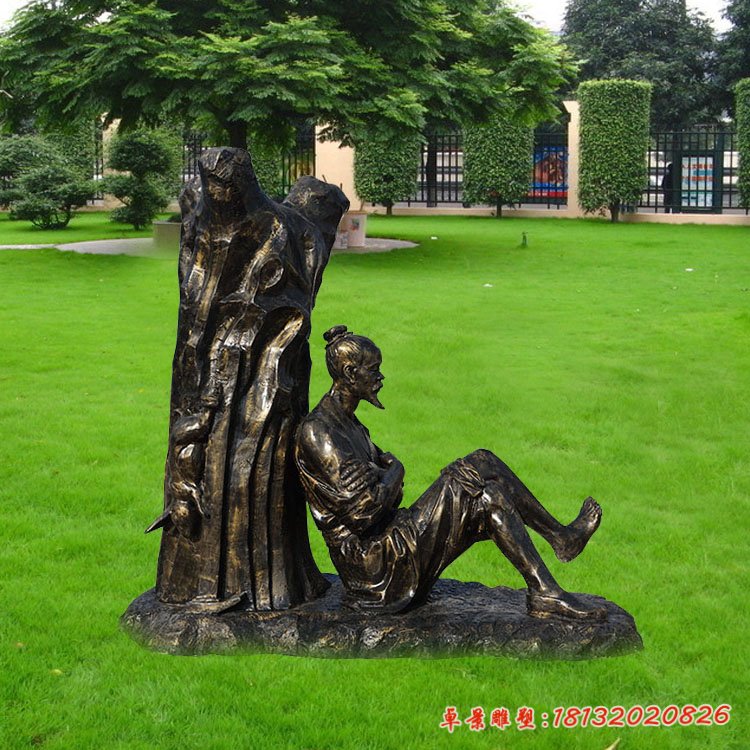 守株待兔人物銅雕