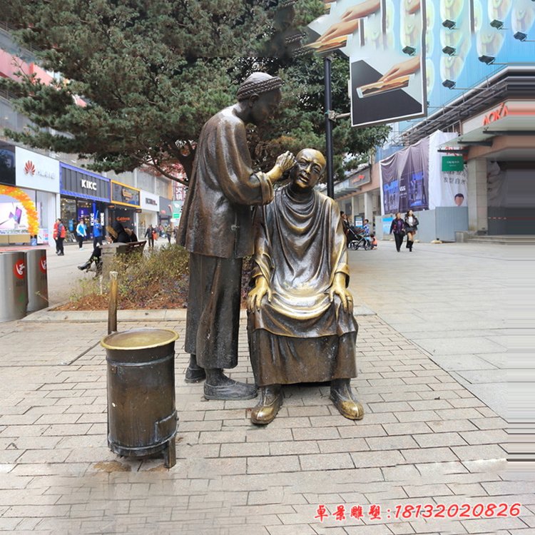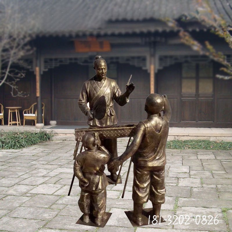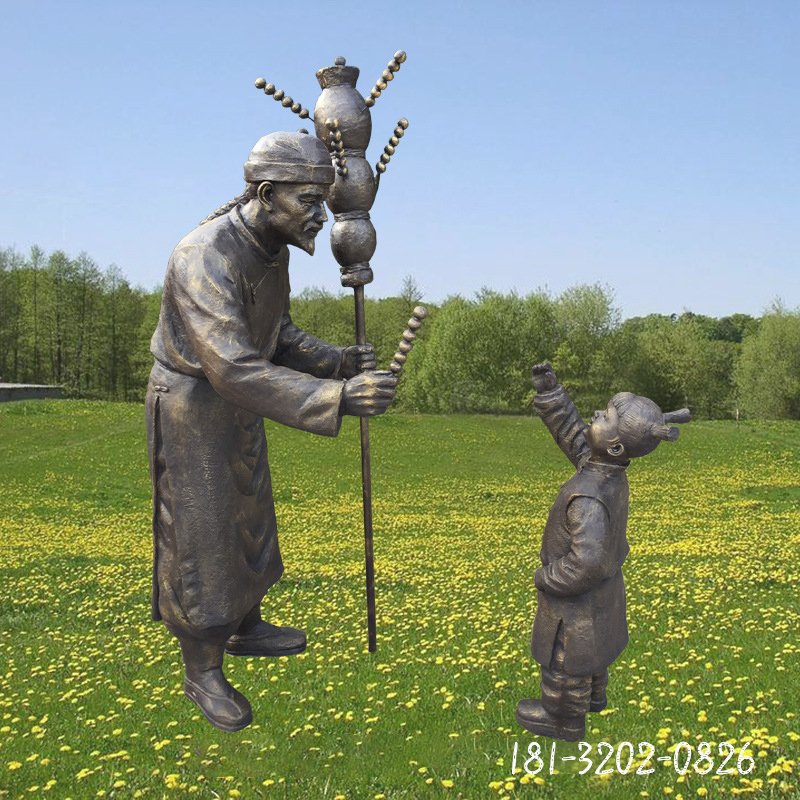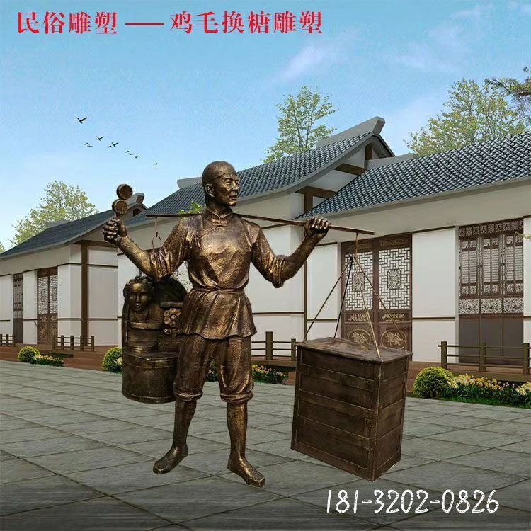 民俗雞毛換糖銅雕