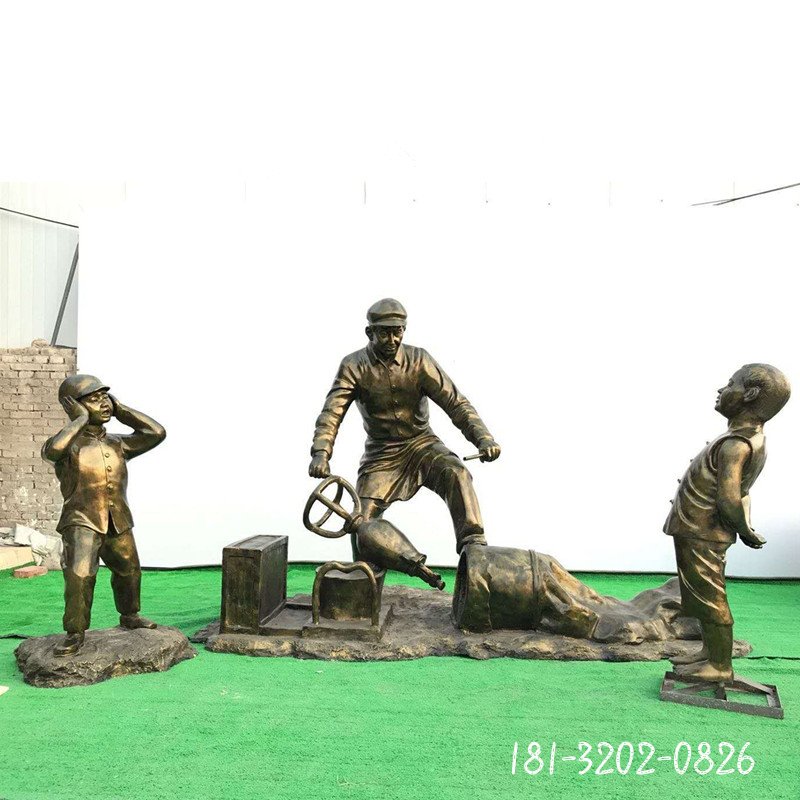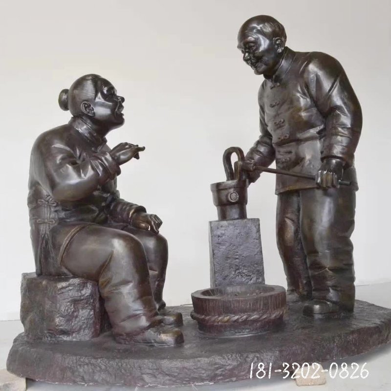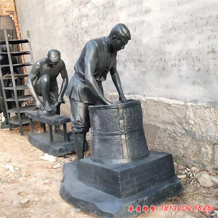 銅雕民俗釀酒人物雕塑