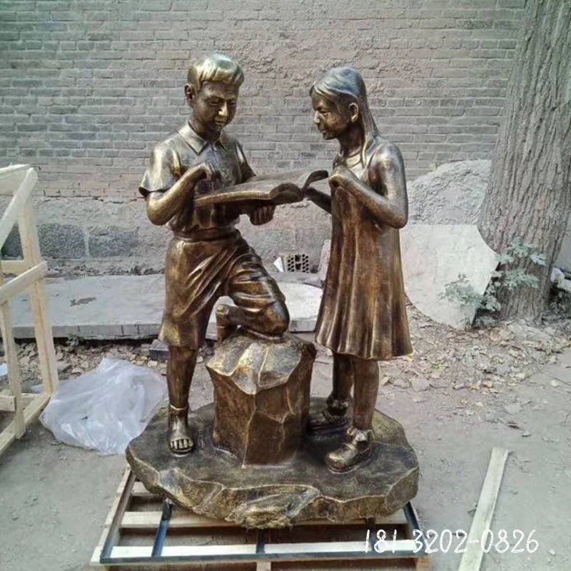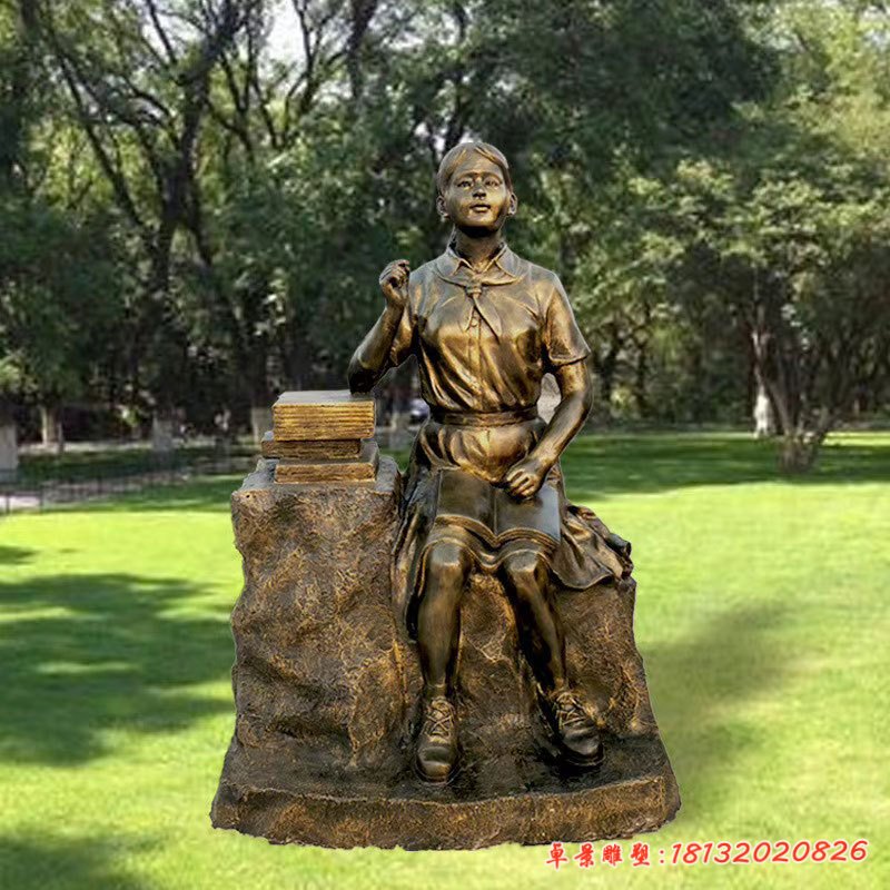 銅雕校園讀書人物