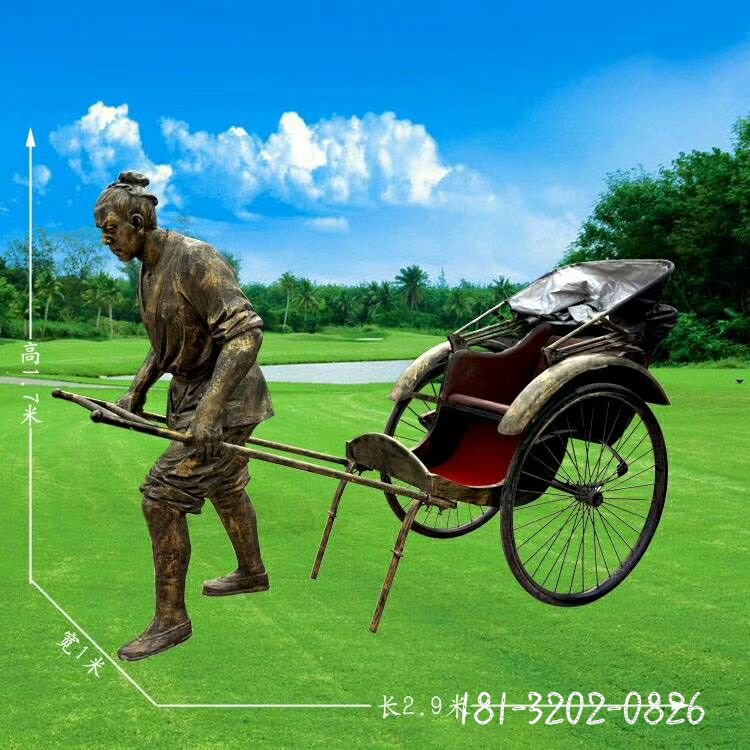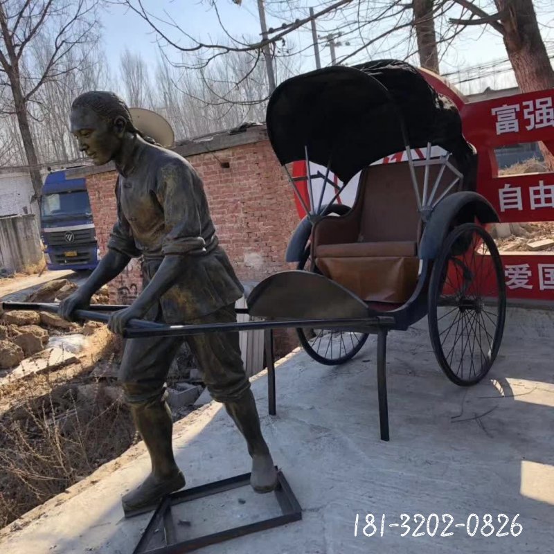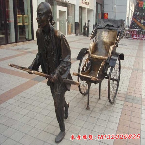 銅雕廣場拉黃包車人物雕塑