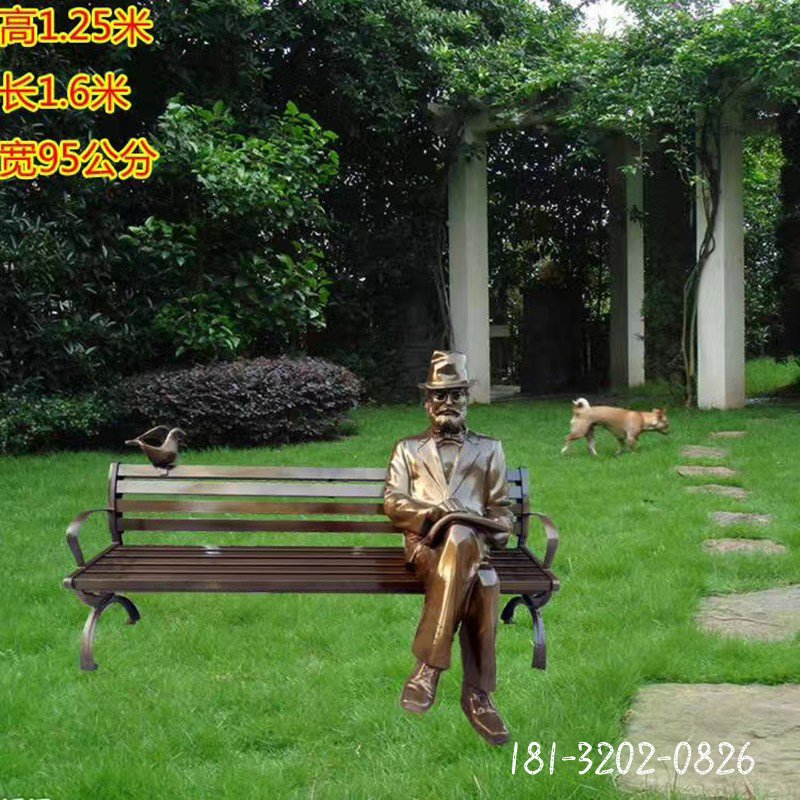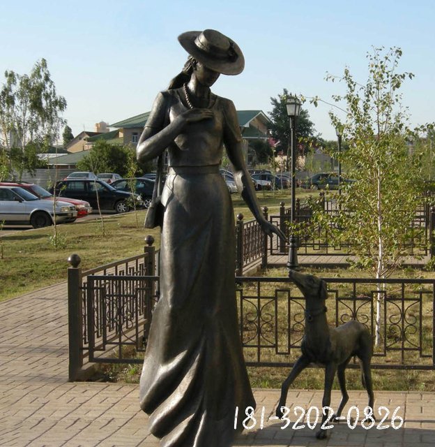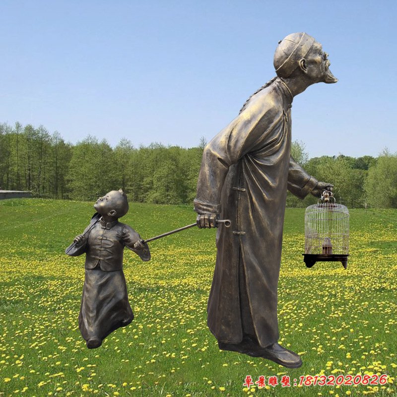 園林遛鳥人物銅雕