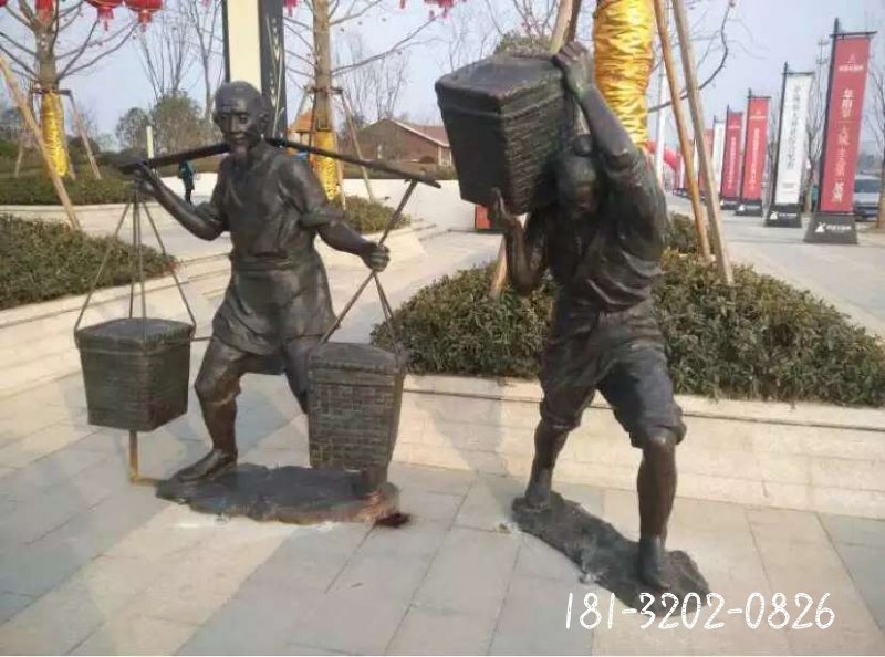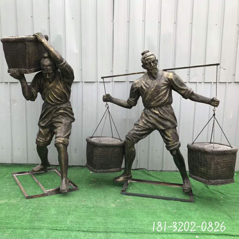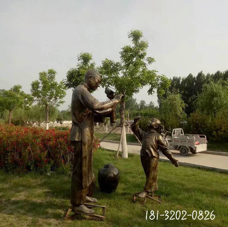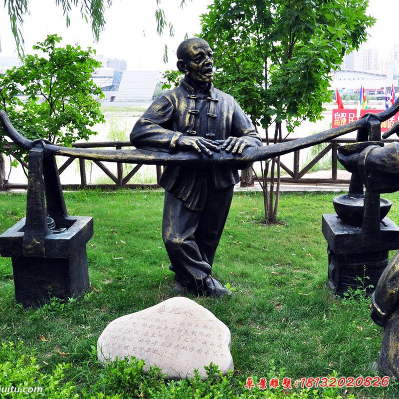 澆水人物民俗銅雕