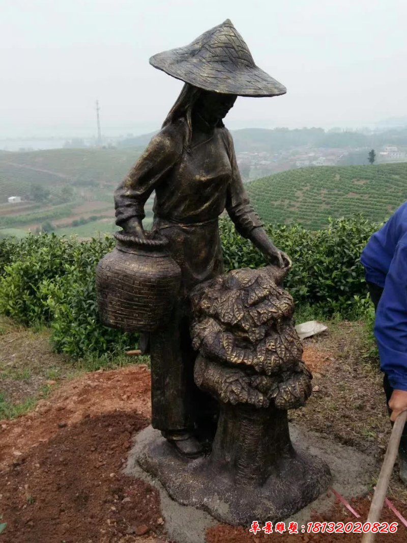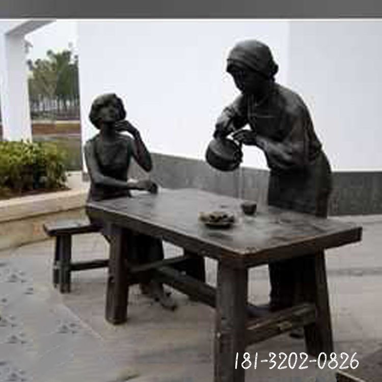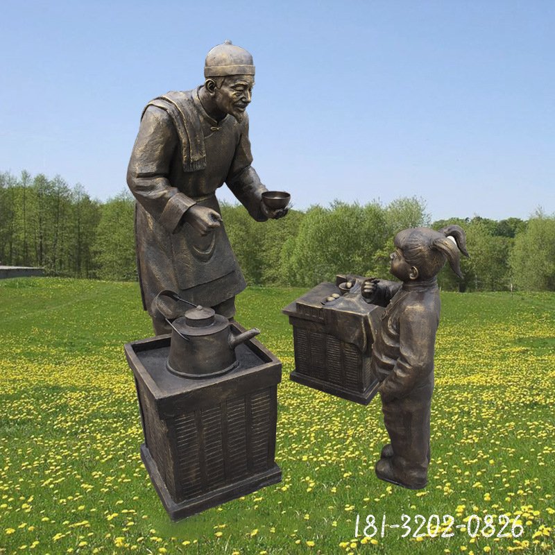 民俗晾茶人物銅雕
