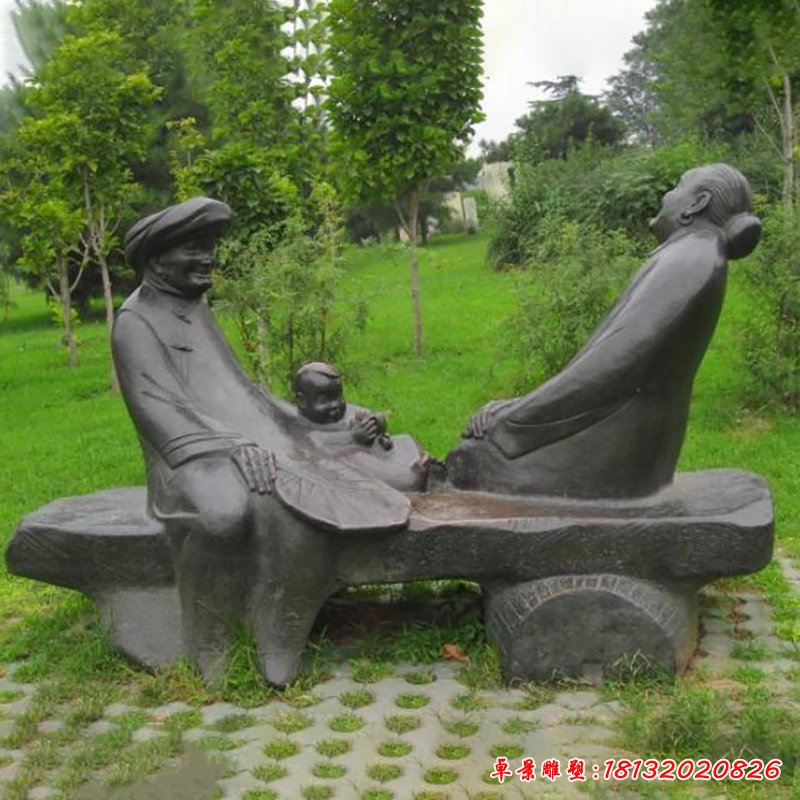 園林一家四口銅雕