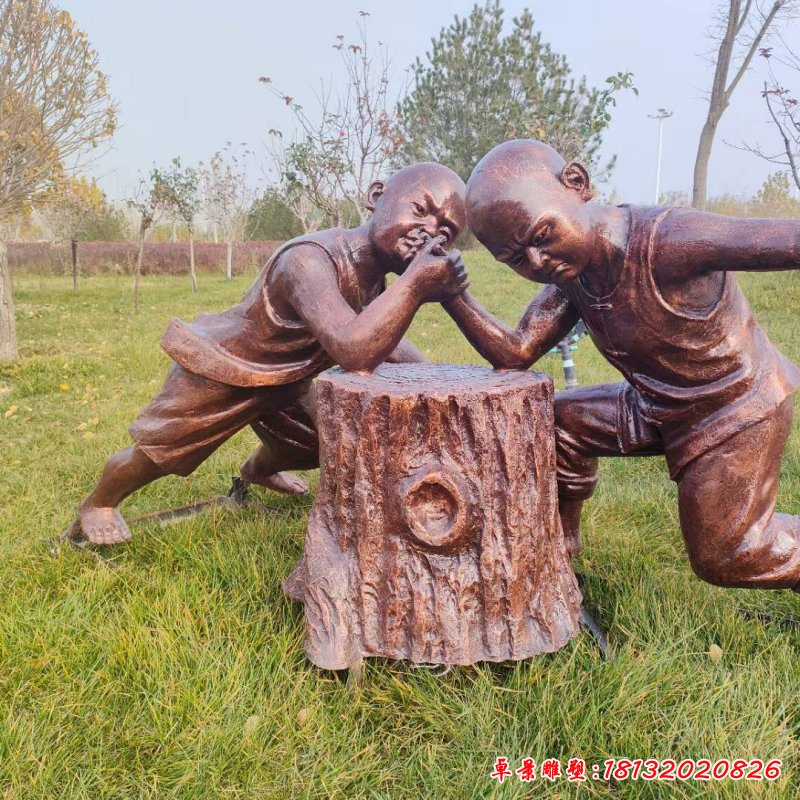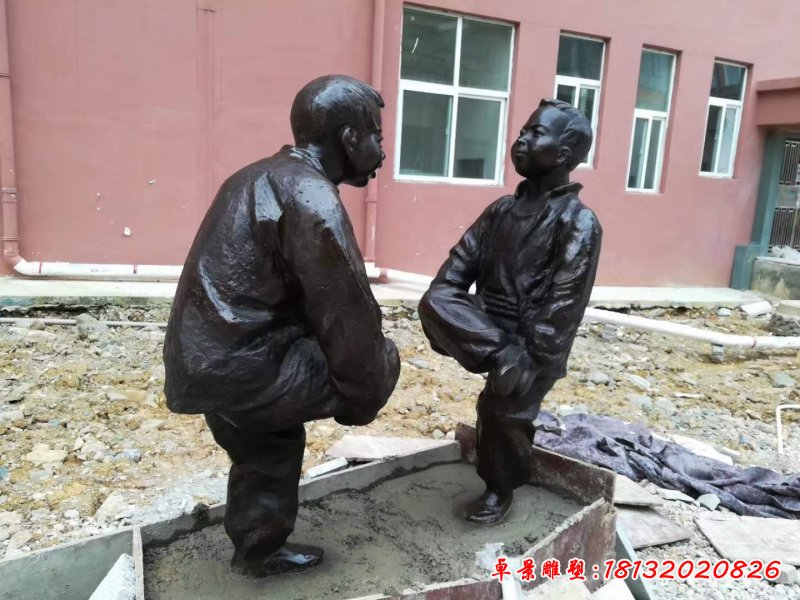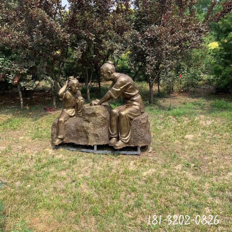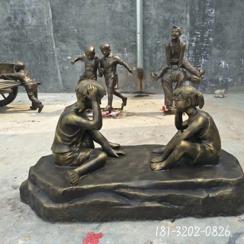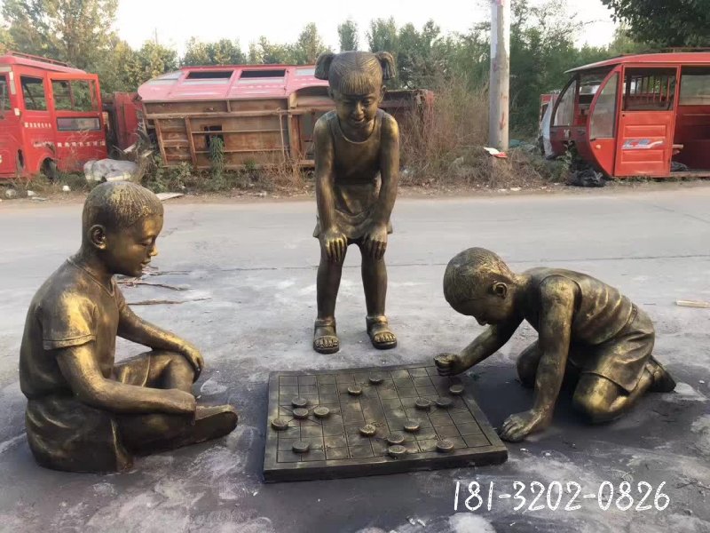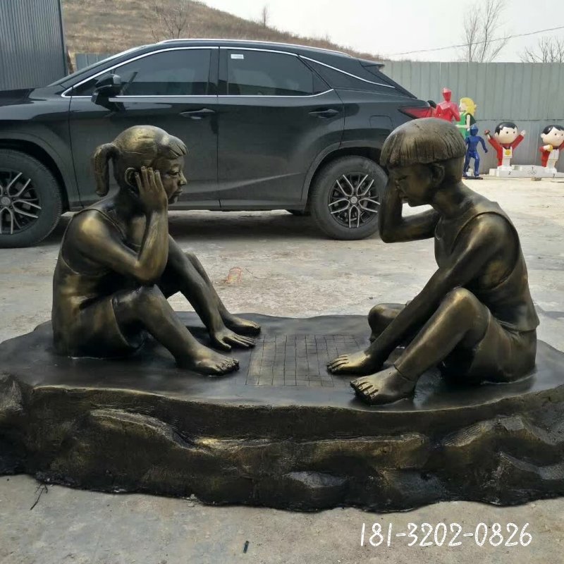 廣場兒童下棋人物銅雕