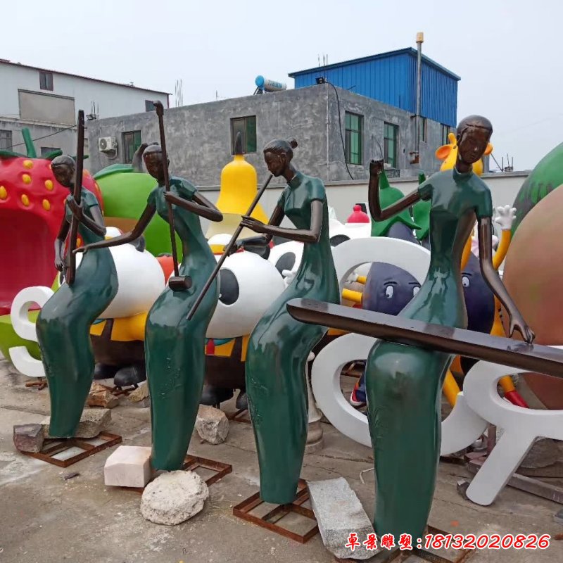 彈古箏人物銅雕