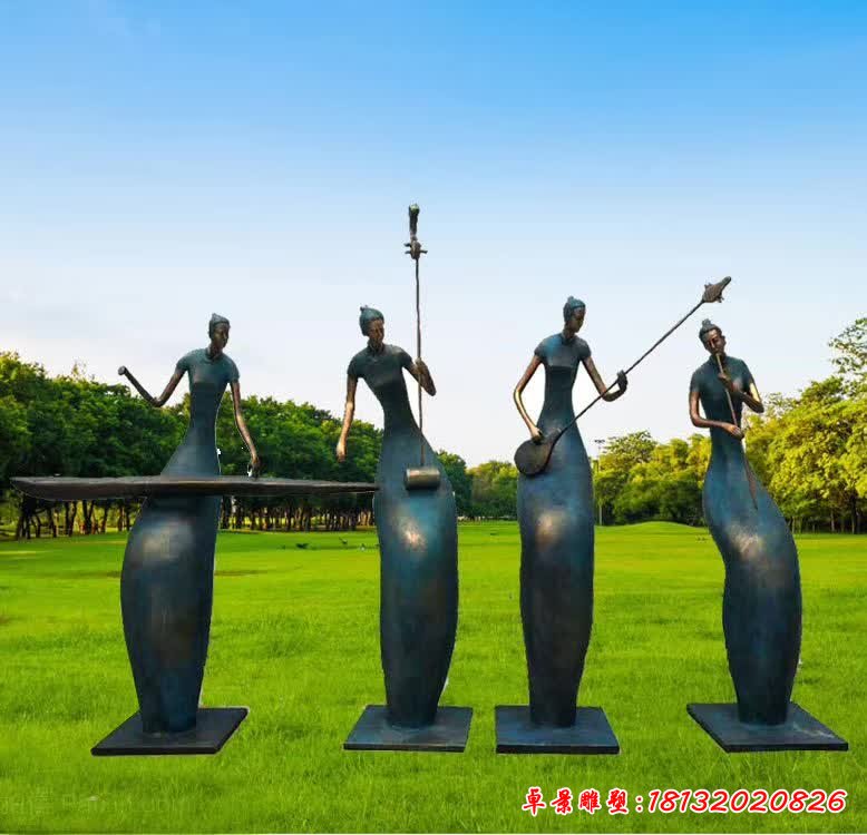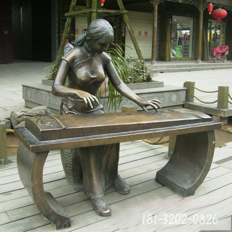 古箏人物民俗銅雕