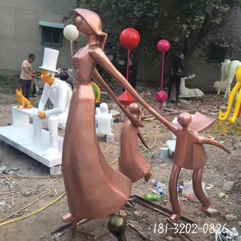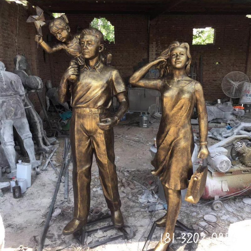 公園一家三口人物雕塑