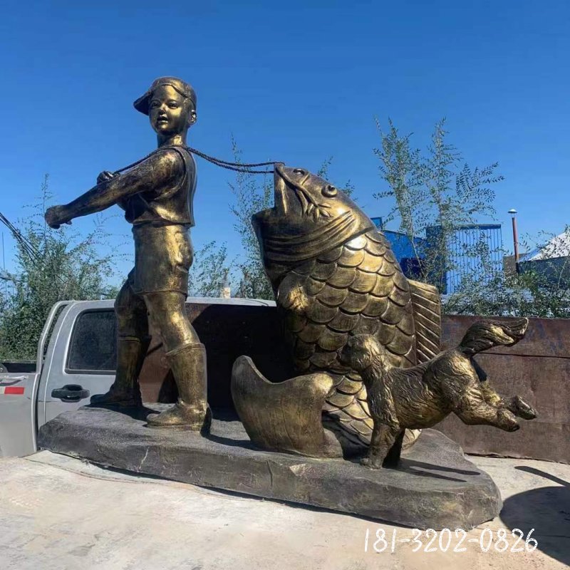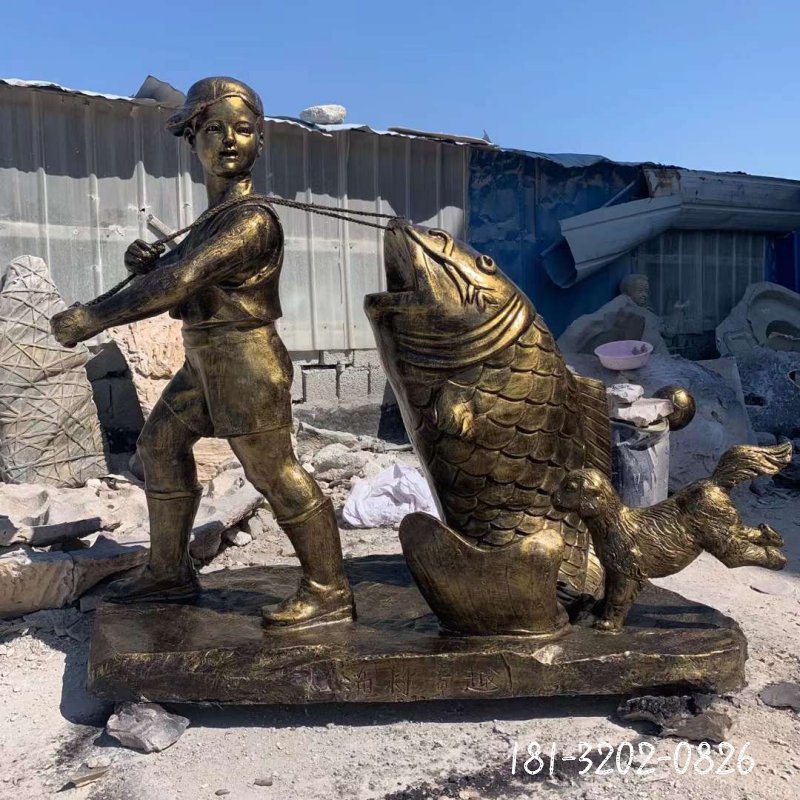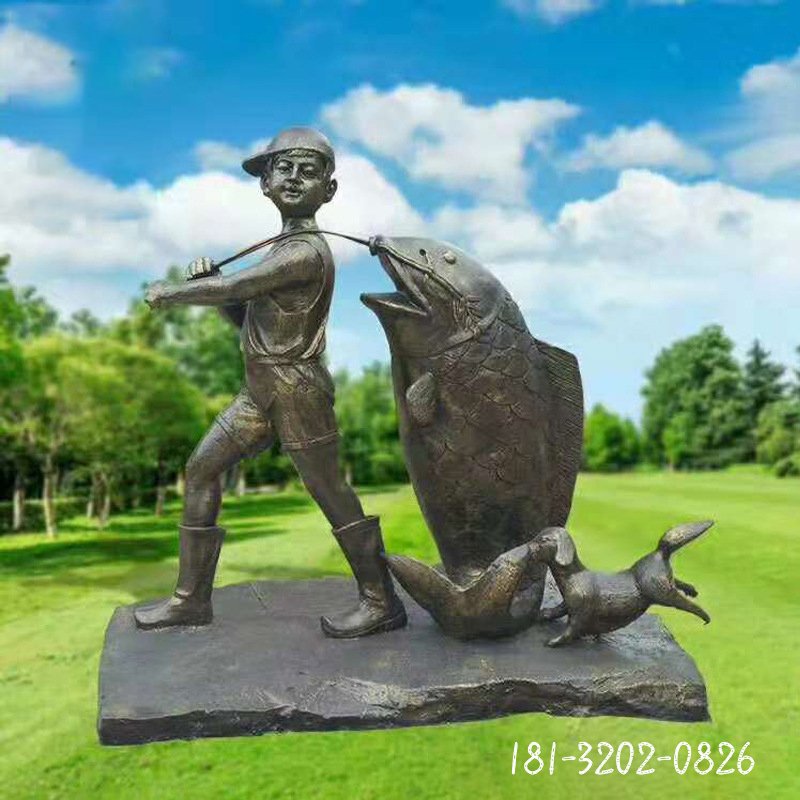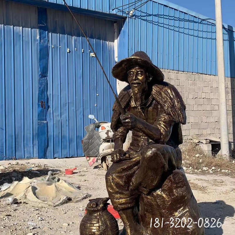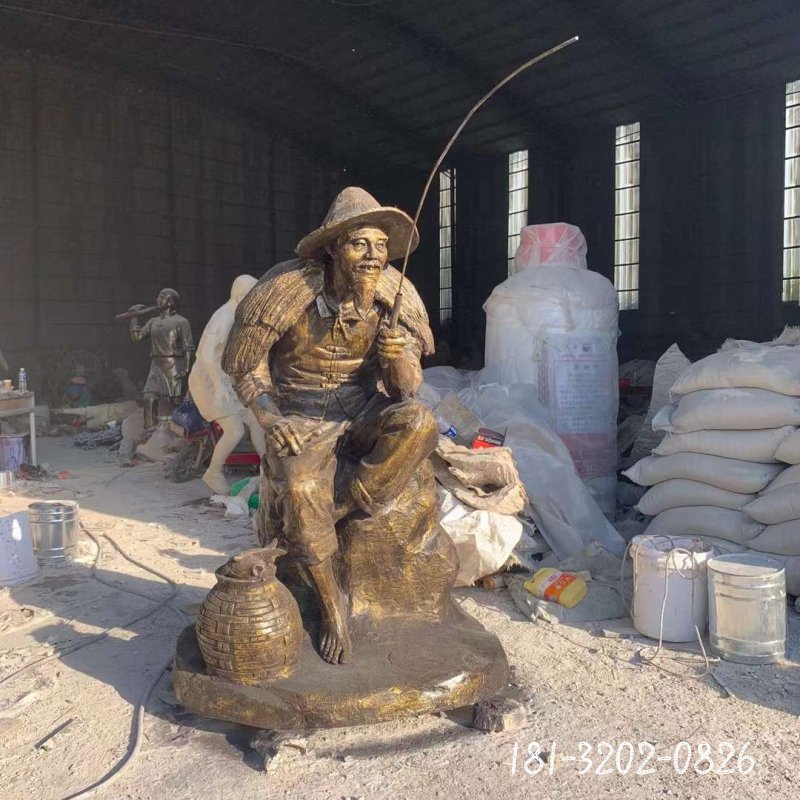 銅雕公園釣魚人物雕塑