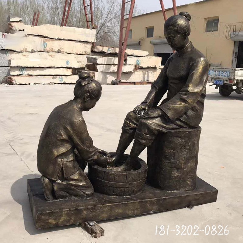 民俗廣場洗腳人物銅雕
