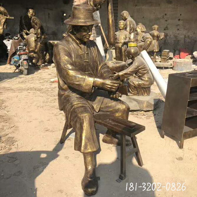古代民俗修鞋人物銅雕