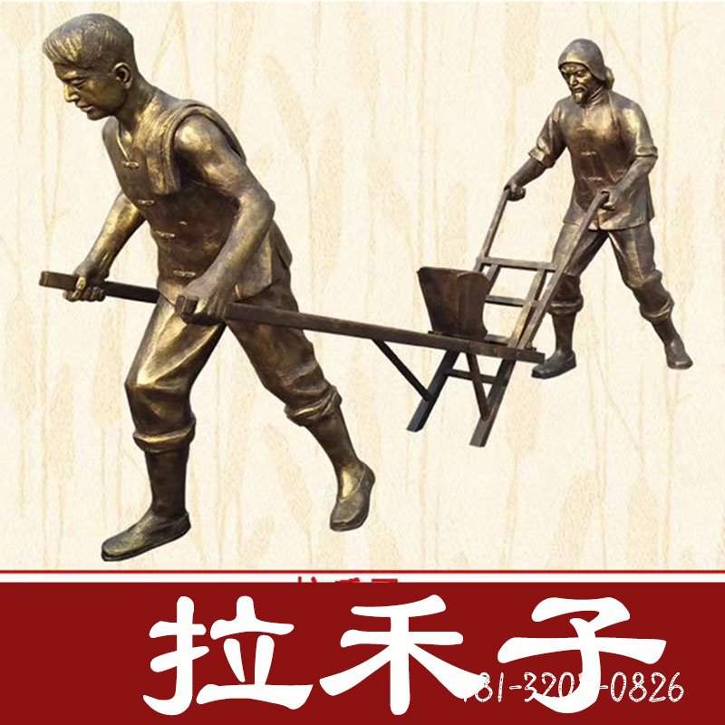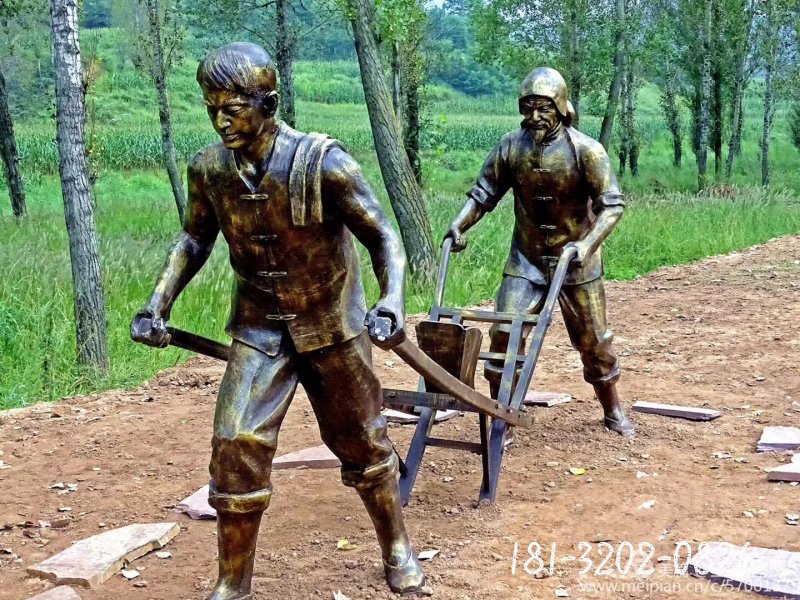推小車的老漢銅雕