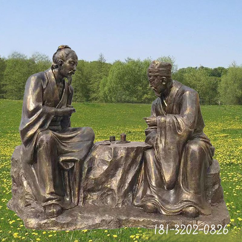 銅雕廣場下棋人物雕塑