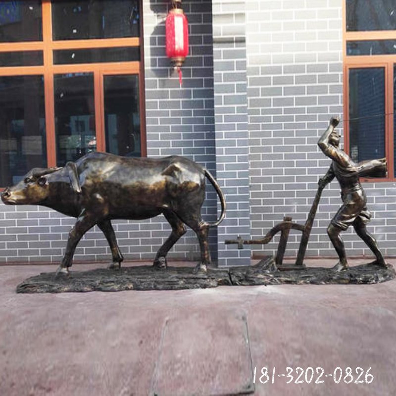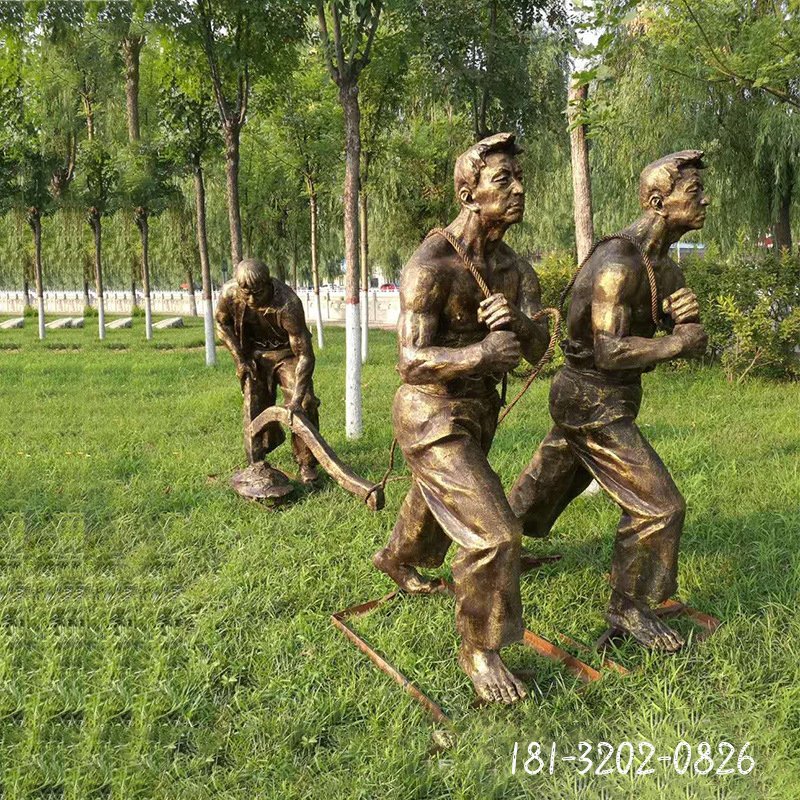 耕田人物銅雕