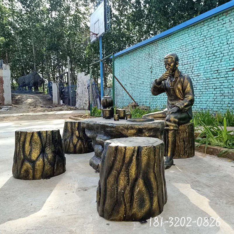 民俗制茶銅雕人物