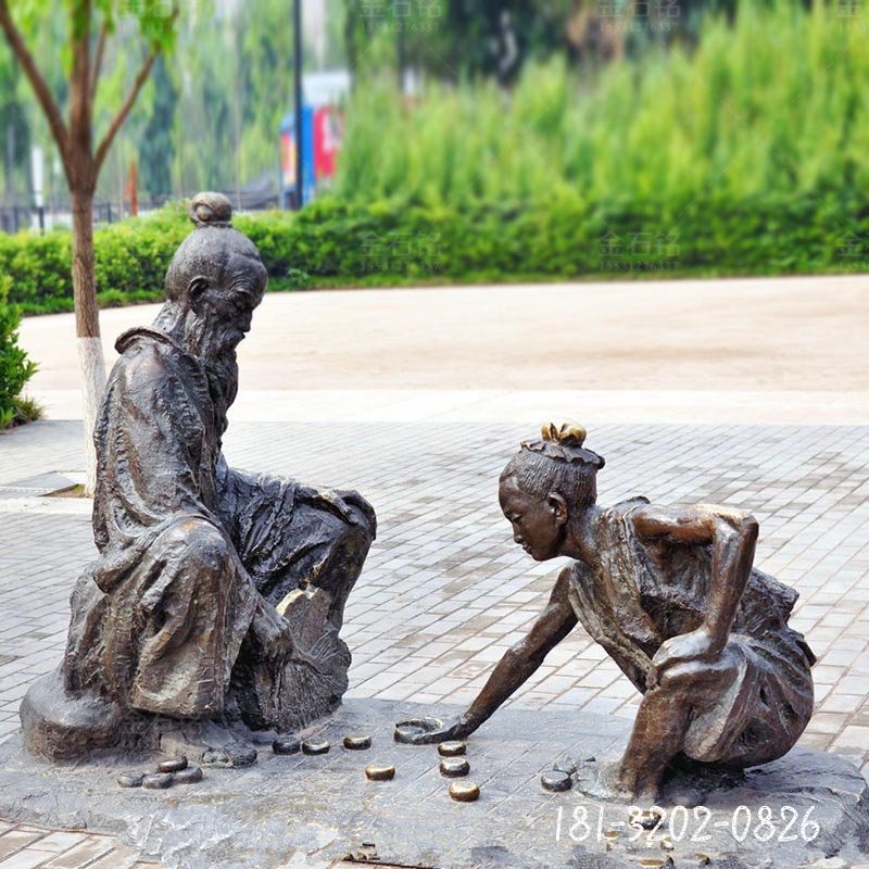 銅雕廣場祖孫下棋人物雕塑