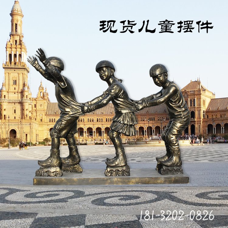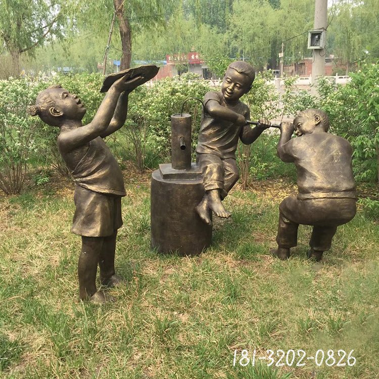 戶外玩耍兒童人物銅雕