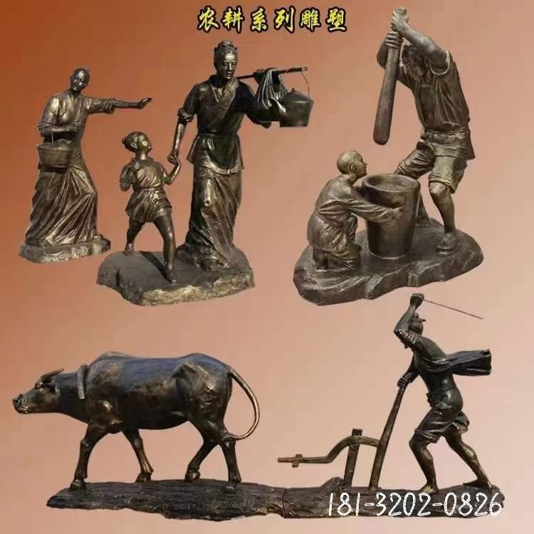 古代農耕人物銅雕