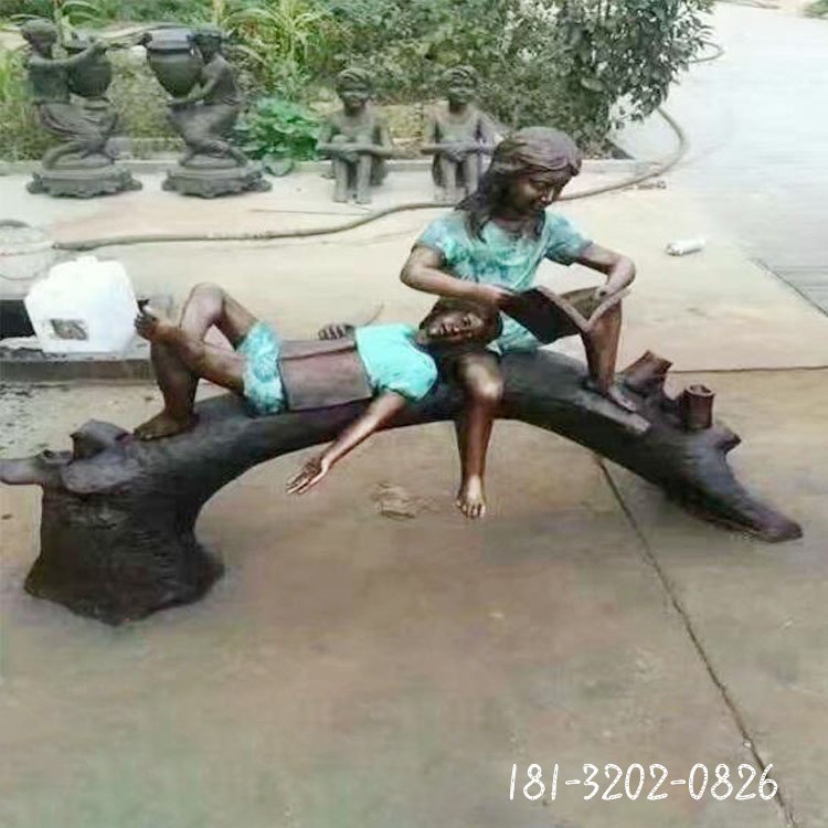 戶外獨木橋兒童銅雕