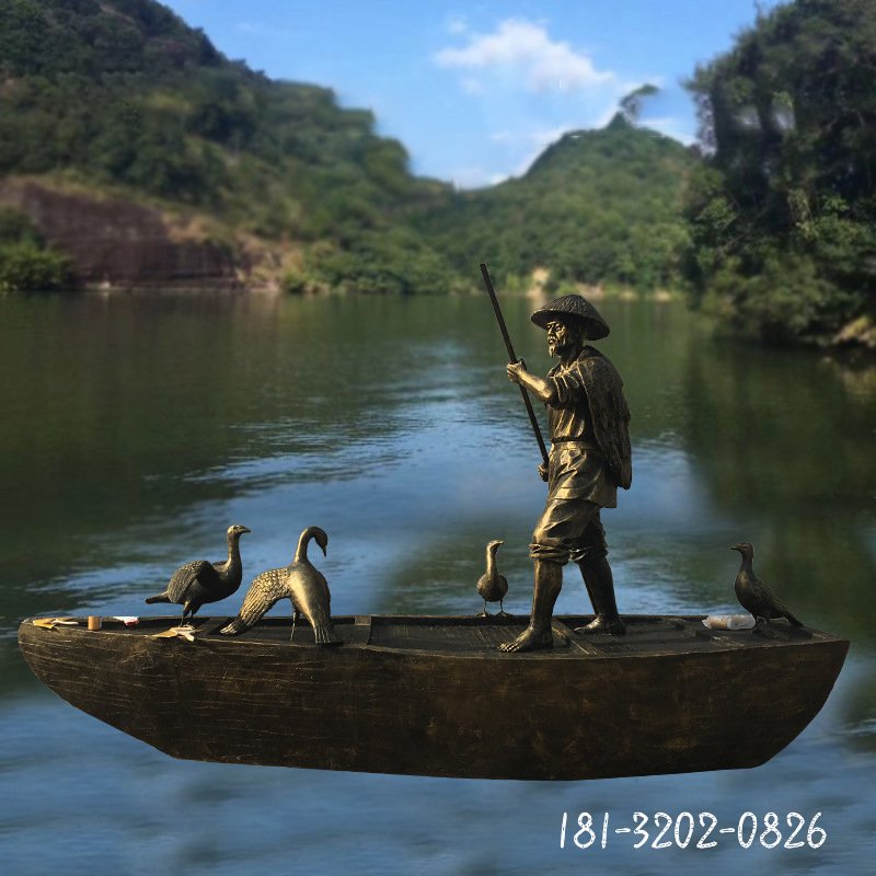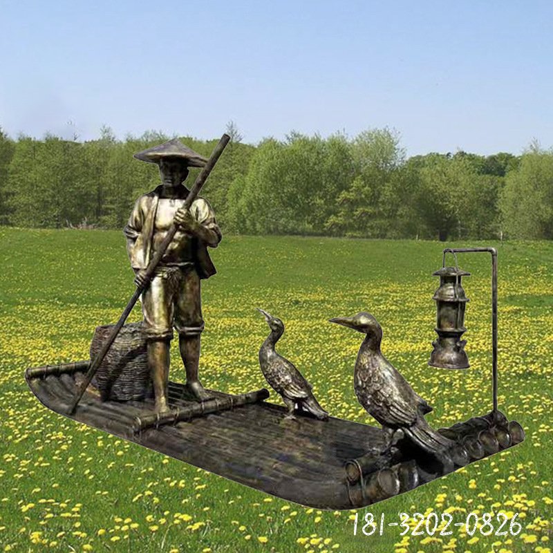 劃船漁夫和鸕鶿雕塑