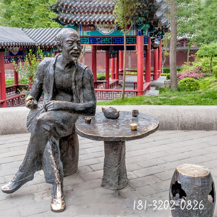 喝茶人物銅雕