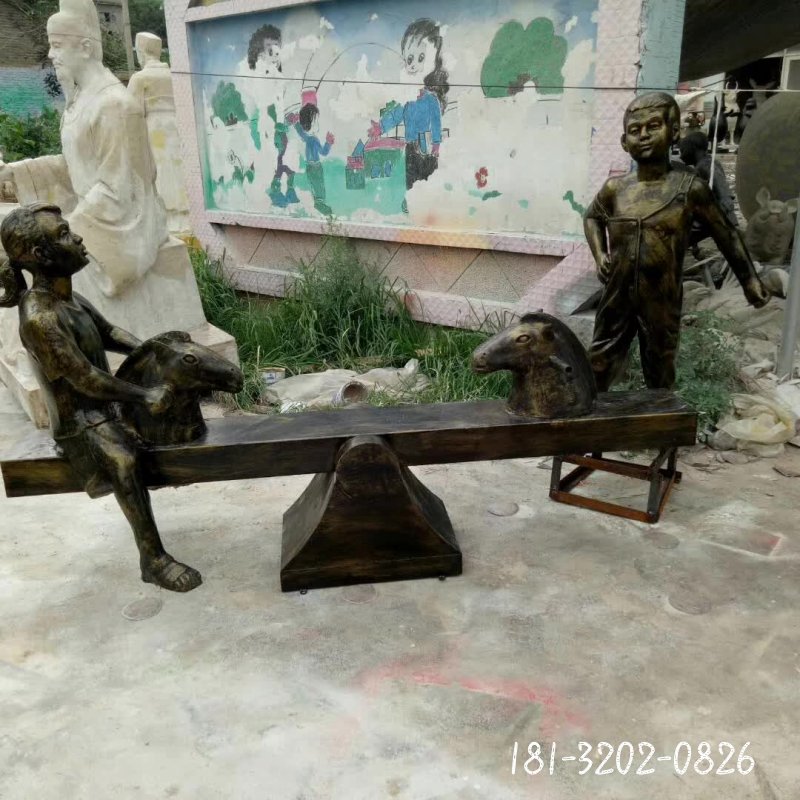 銅雕園林蹺蹺板人物