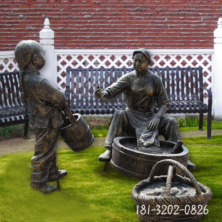 洗衣服人物民俗銅雕