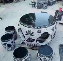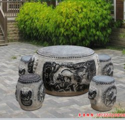 傳統圖案庭院仿古石桌凳