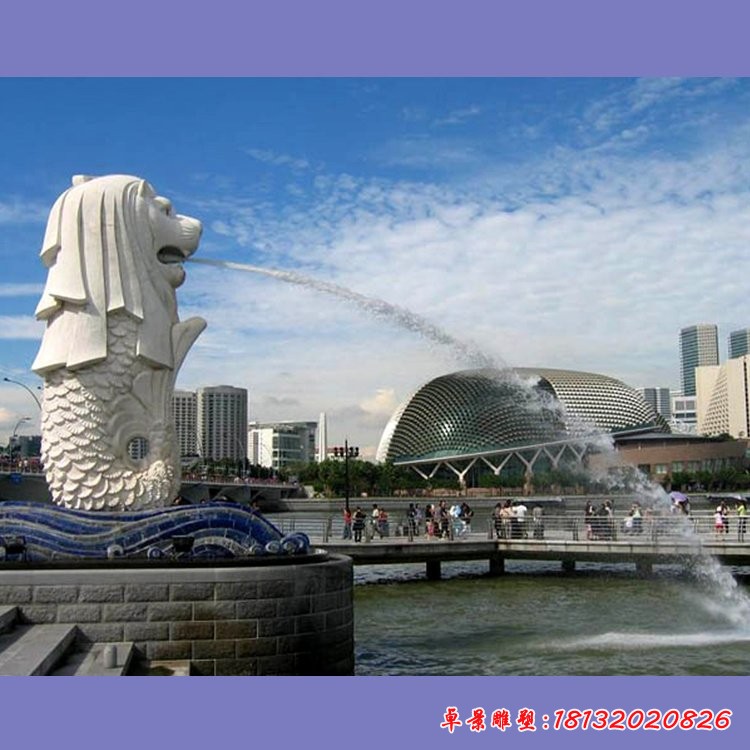 小區大型噴水魚尾獅石雕