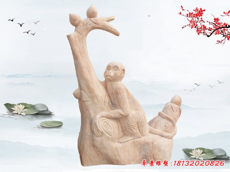 公園動物晚霞紅猴子石雕