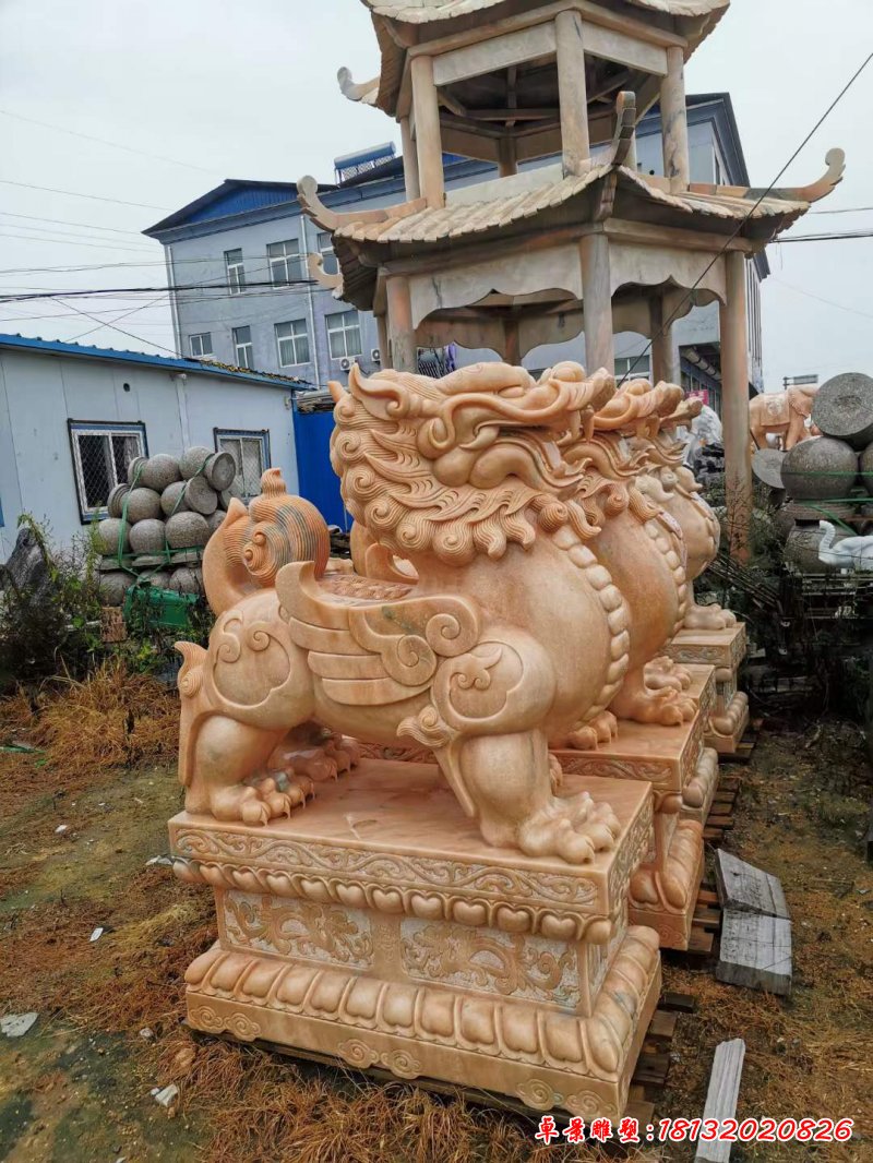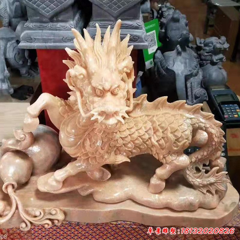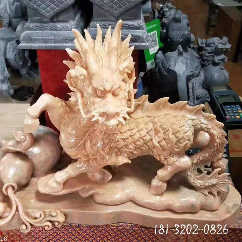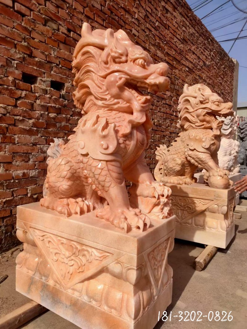 晚霞紅動物麒麟石雕