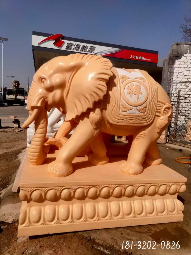 晚霞紅動物大象石雕