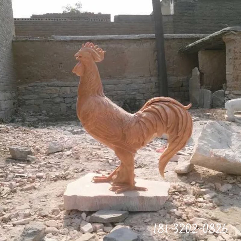 晚霞紅石雕動物雞