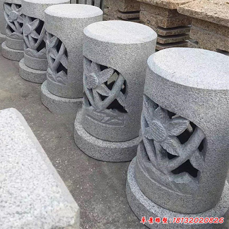 向日葵花朵浮雕石燈