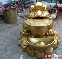 招財金蟾銅雕,貼金銅金蟾雕塑
