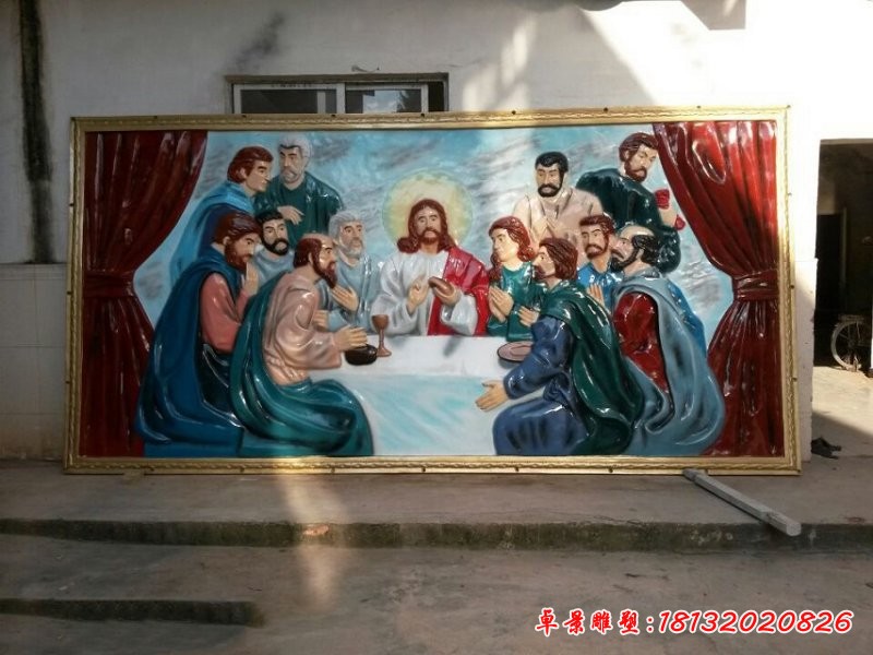 玻璃鋼彩繪最后的晚餐浮雕