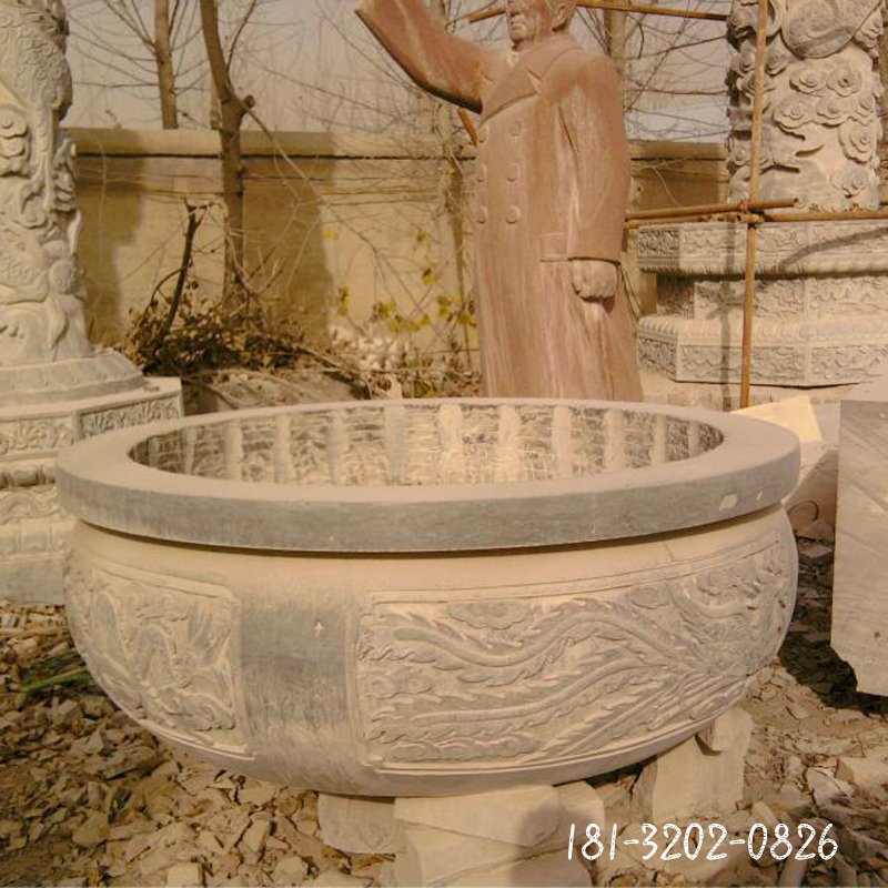 寺廟圓形香爐石雕