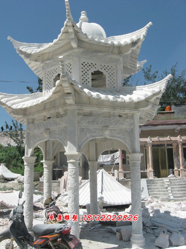 大理石雙層八角涼亭雕塑