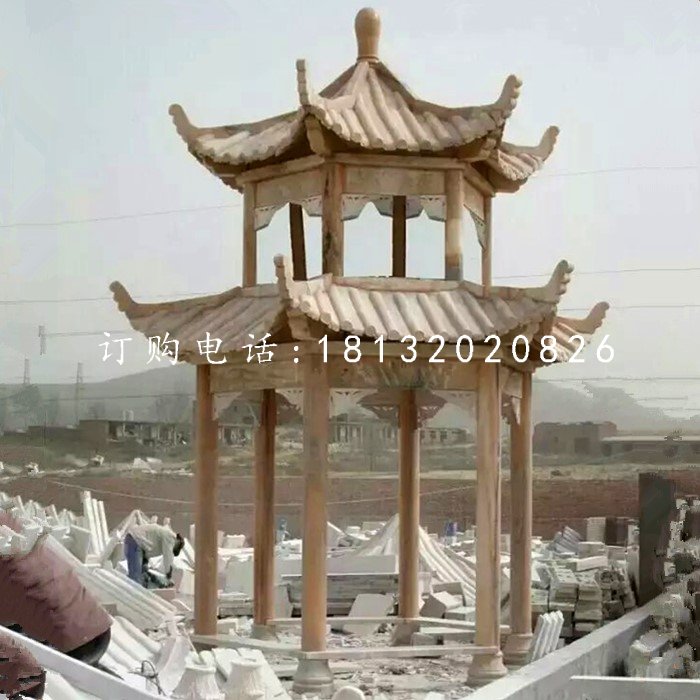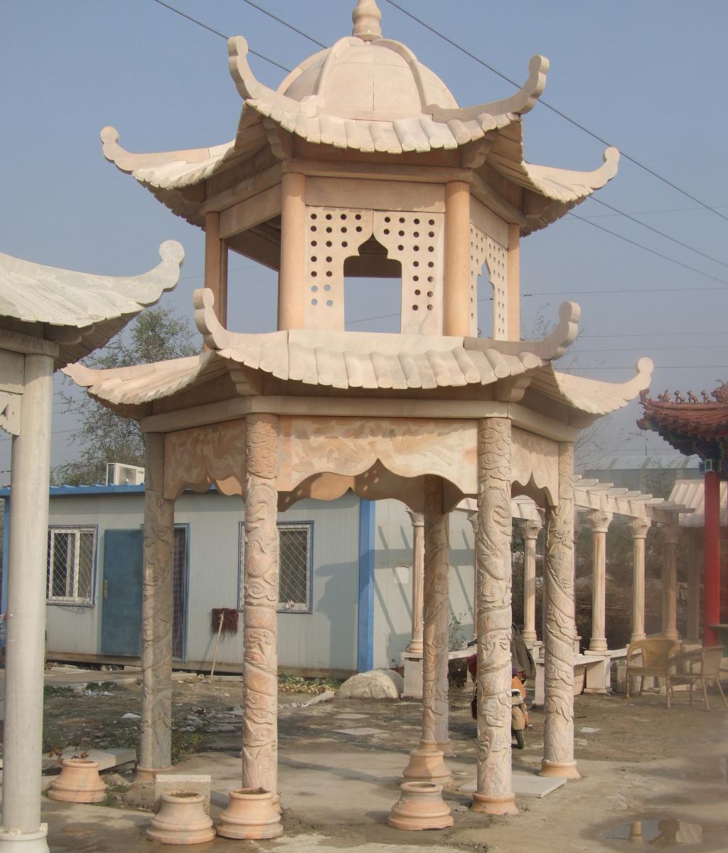 雙層石涼亭建筑雕塑
