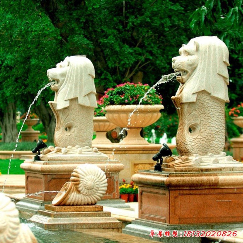 歐式小區砂巖魚尾獅石雕
