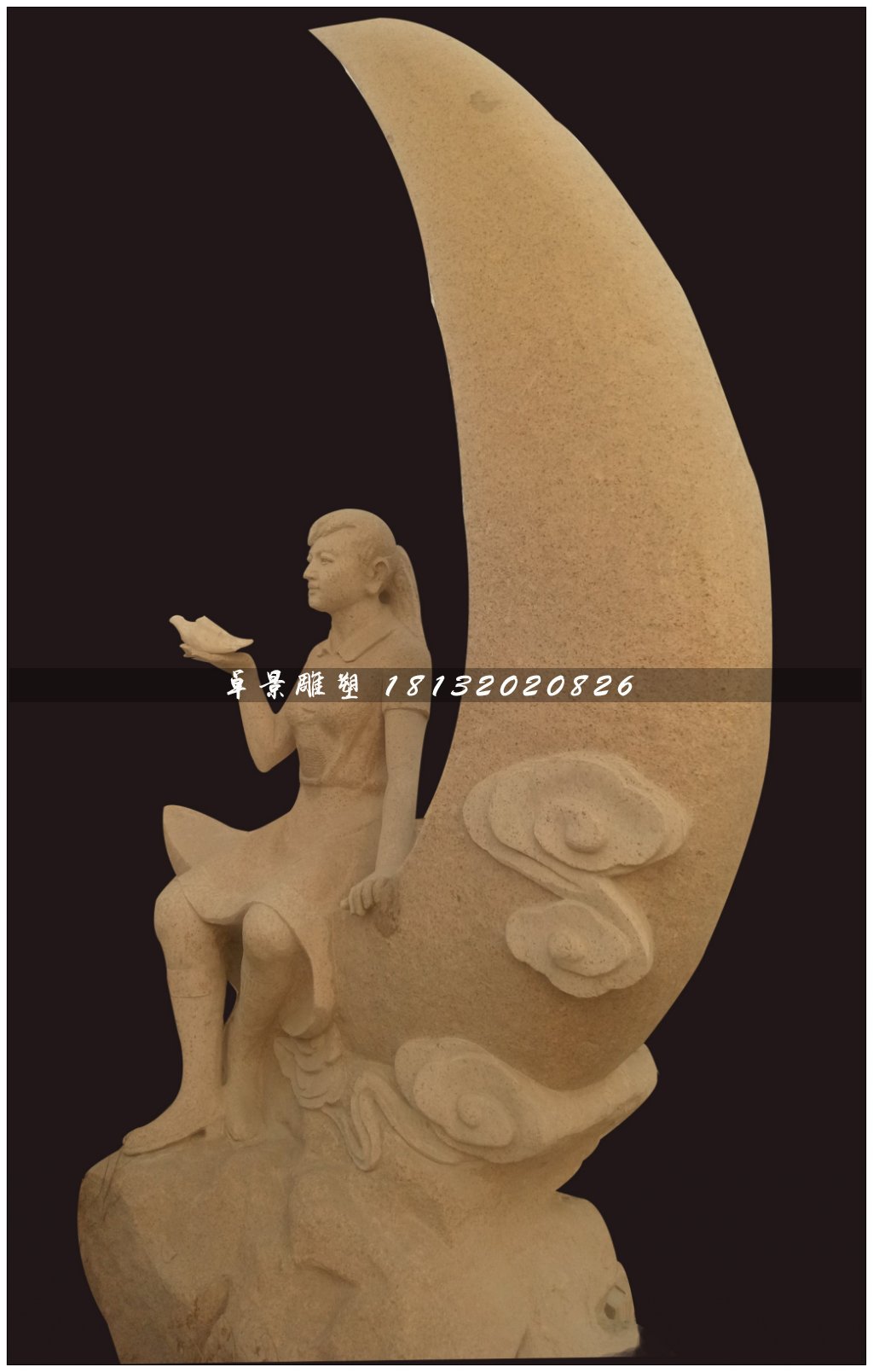 坐在月亮上的女孩石雕