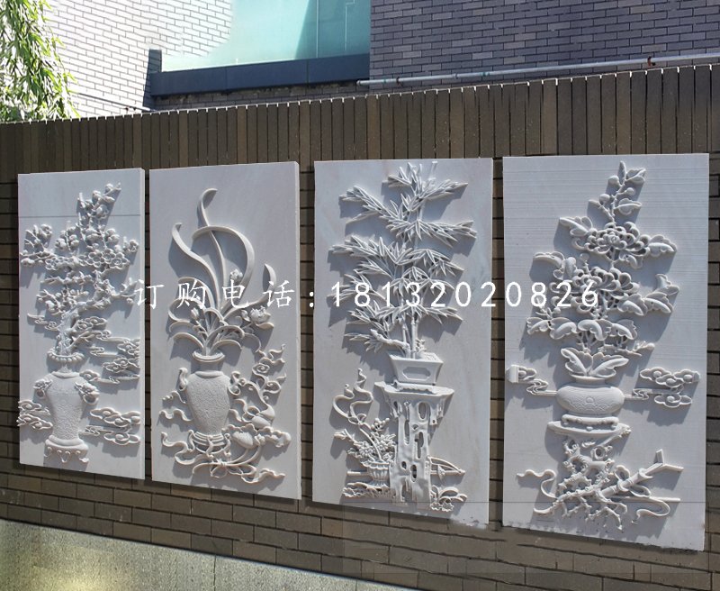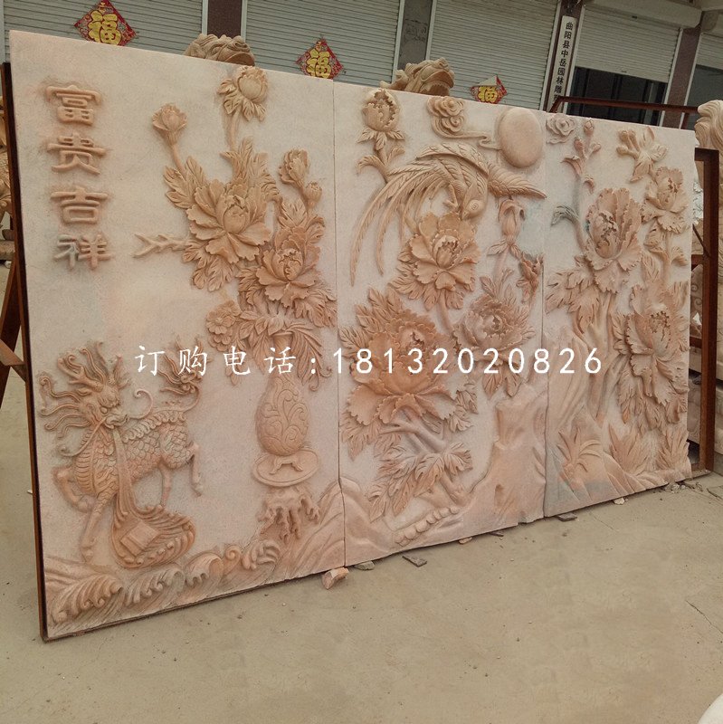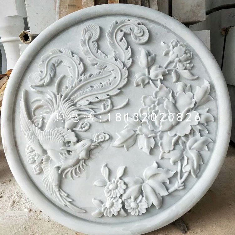 漢白玉鳳凰牡丹石浮雕墻壁石浮雕
