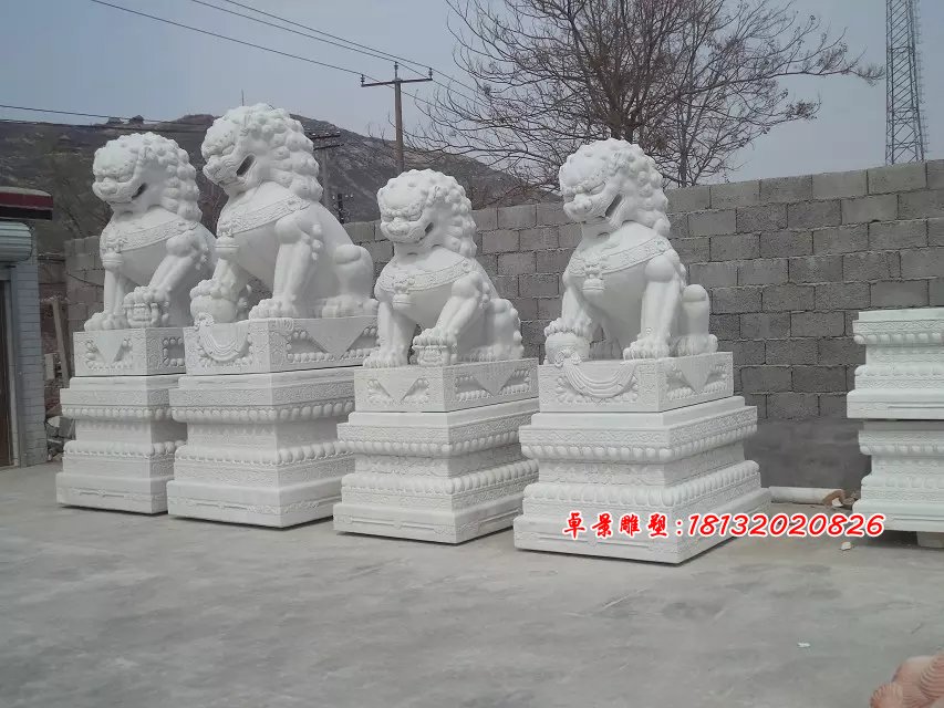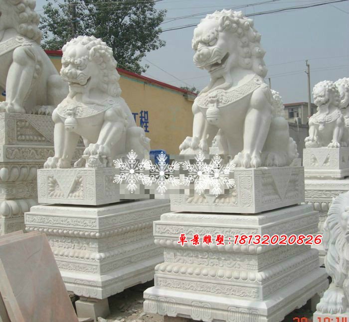 中國人歷來把石獅子視為吉祥之物。在我們生活中各種造型的石獅子隨處可見。古代的官衙廟堂、豪門巨宅大門前,都擺放一對石獅子用以鎮宅護衛,石獅子具有招財守財的作用。 石獅子一般分為中式石獅子和歐式石獅子,中式的石獅子,具有獨特的藝術風格。它們既是珍貴的歷史文物,更是寶貴的藝術珍品,反映出我國源遠流長的文化傳統和石雕藝術,值得我們觀賞和珍惜!下面卓景雕塑為大家介紹一下常見的漢白玉獅子雕塑。