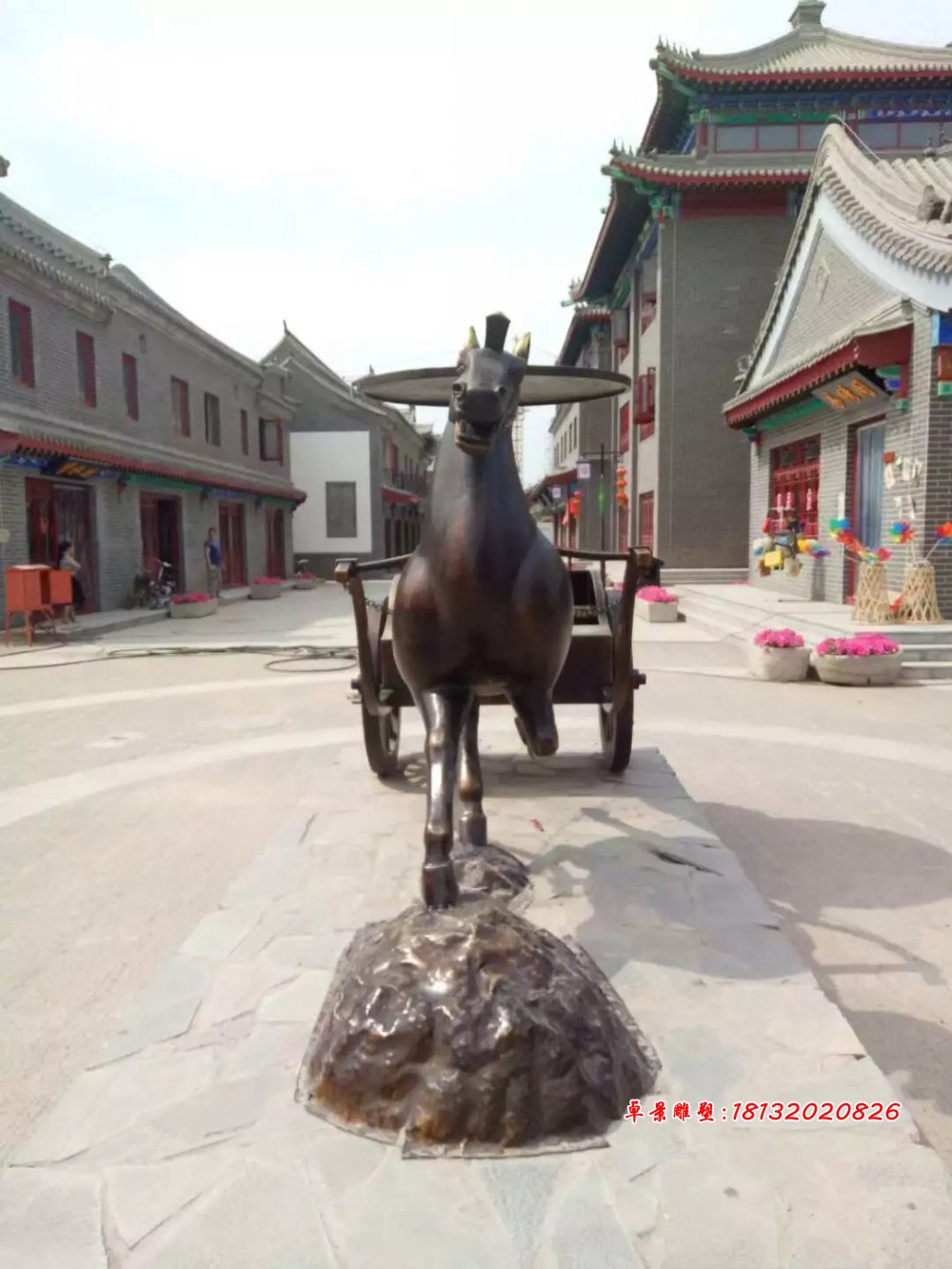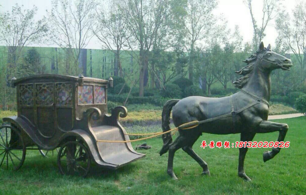這種是鑄銅的仿古代馬車雕塑,通常安裝和擺放在草地上,這種馬拉車雕塑造價要低一些。
