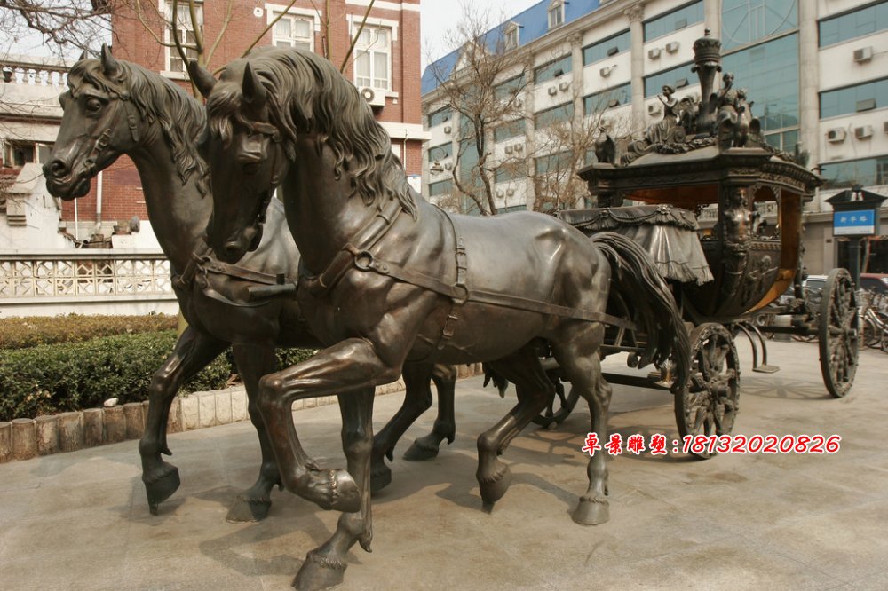 這種馬拉車雕塑也是常見的一種,卓景雕塑公司制作過多次這種馬拉車雕塑,可以做成銅的,也可以做成玻璃鋼仿銅的。