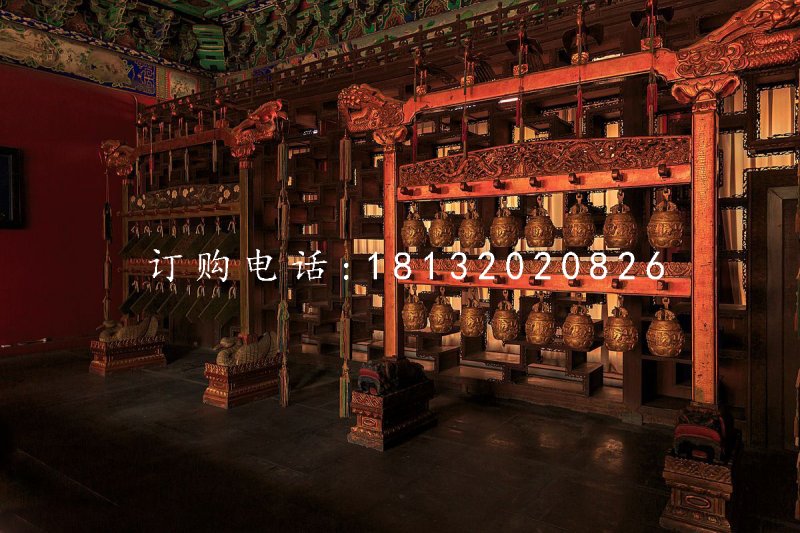 它用青銅鑄成,由大小不同的扁圓鐘按照音調(diào)高低的次序排列起來,懸掛在一個(gè)巨大的鐘架上,用丁字形的木錘和長(zhǎng)形的棒分別敲打銅鐘,能發(fā)出不同的樂音,因?yàn)槊總€(gè)鐘的音調(diào)不同,按照音譜敲打,可以演奏出美妙的樂曲。引在木架上懸掛一組音調(diào)高低不同的銅鐘,由古代侍女用小木槌敲打奏樂。編鐘的發(fā)聲原理大體是,編鐘的鐘體小,音調(diào)就高,音量也小;鐘體大,音調(diào)就低,音量也大,所以鑄造時(shí)的尺寸和形狀對(duì)編鐘有重要的影響。