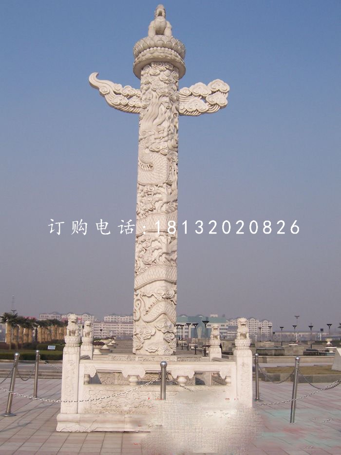 石刻華表古已有之,但明代天安門的白石華表卻自有其時代的特點和藝術成就。它是以多種雕刻手法塑造的空前建筑裝飾,華表柱身的主體龍紋,以壓地隱起的淺浮雕刻畫出蟠曲而上的龍形,間夾以云紋華飾,使得華表瑰麗而莊嚴,其柱頭上滿飾異彩紛呈的透雕云朵,蓮瓣石盤上飾以圓雕的雄獅。其下還有華麗的八角座,圍以雕刻精致的龍紋欄板和雕刻有獅子的望柱。綜觀華表的總體造型,它是在傳統形式基礎上的升華,同時我們也看到,華表本質上也是中西文化合璧的完美象征。