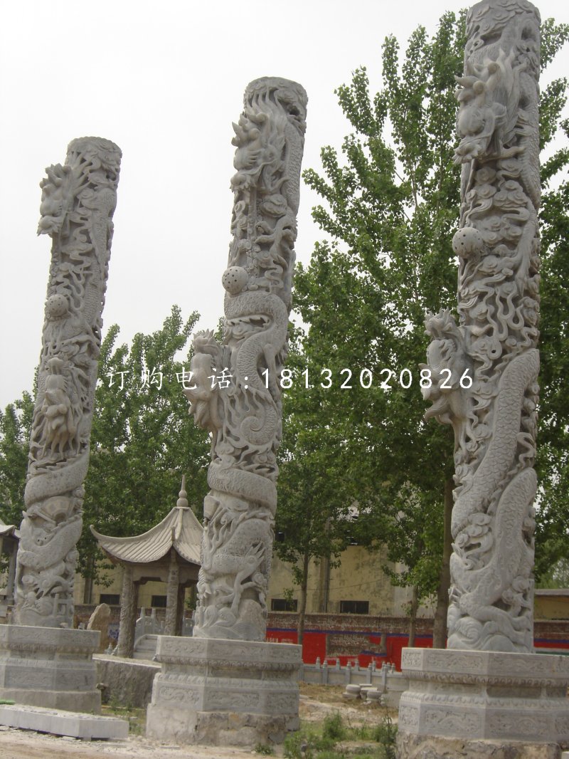 石雕龍柱的的全身是纏繞著龍的,還有美麗的云板,在最頂端還有蹲獸,生動形象,栩栩如生。預示著吉祥、華與誠信。可以擺在辦公室內作為裝飾,也可以作為家居生活只用,還可以在園林里來欣賞,還可以在廣場路邊成為景觀與地標。